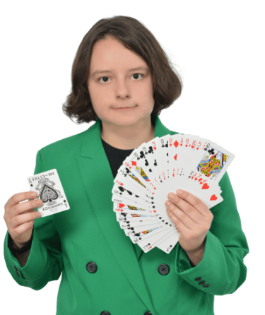 Nazywam się Joanna Pałeczka. Od 7 lat zajmuję się iluzją, w wieku 14 lat założyłam firmę i wydałam dwie książki. Zajęłam 2 miejsce w Ogólnopolskim Turnieju Iluzjonistów 2022 oraz 3 miejsce w roku 2023. Jestem trzykrotną stypendystką Fundacji Santander. Wystąpiłam w telewizji już 3 razy. Z chęcią wystąpię na twoim wydarzeniu.